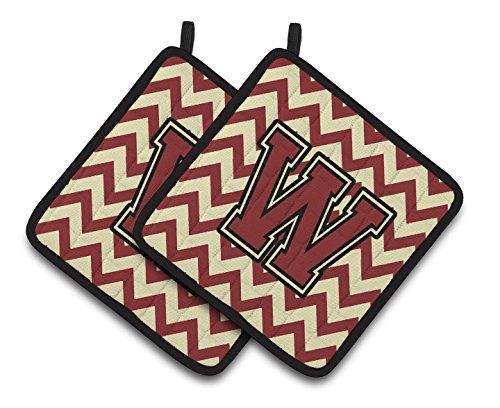 Caroline's Treasures Letter W Chevron Maroon & Gold Pair of Pot Holders CJ1061-WPTHD, 7.5HX7.5W, Multicolor