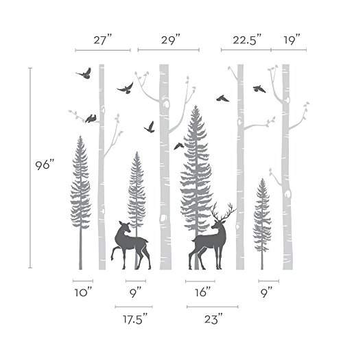 Birch Tree Wall Decal with Birds and Deer W1121 - scheme A - 96" (243 cm)Tall Trees - by Simple Shapes