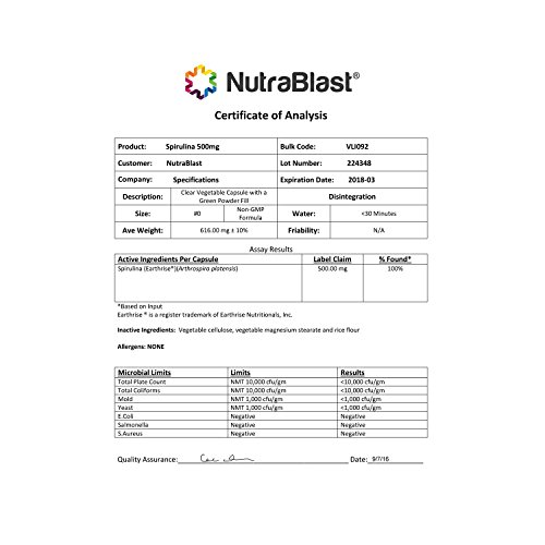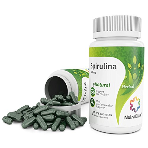 NutraBlast Spirulina 500Mg Earthrise® - Non-GMO - Supports Weight Loss, Blood Pressure, and Cholesterol Levels - Made in USA (90 Veggie Capsules)