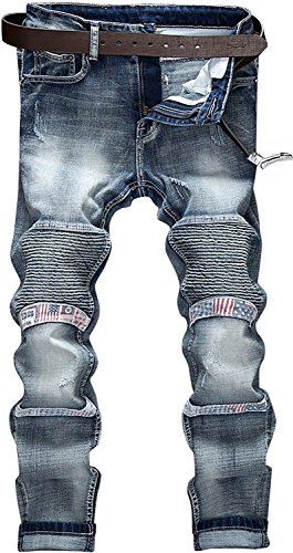 -. Title : YTD Mens Distressed Ripped Biker Slim Jeans Stretched Moto Denim Pants