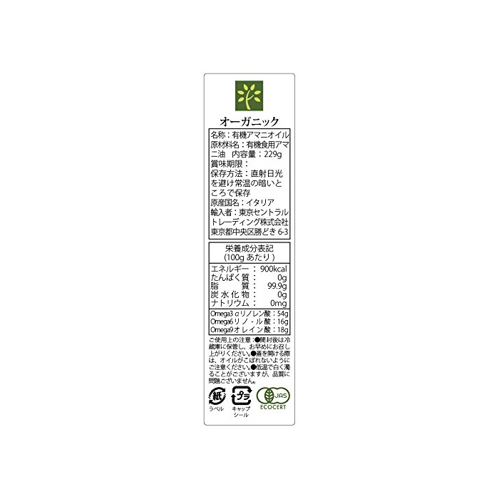 도쿄 센트럴 트레이딩 biologicoils 오거닉JAS인증 이탈리아산 유기 아마츄어 냄새《루》 229g (아마츄어《니》유 아마인 유flux 시드 오일)
