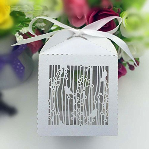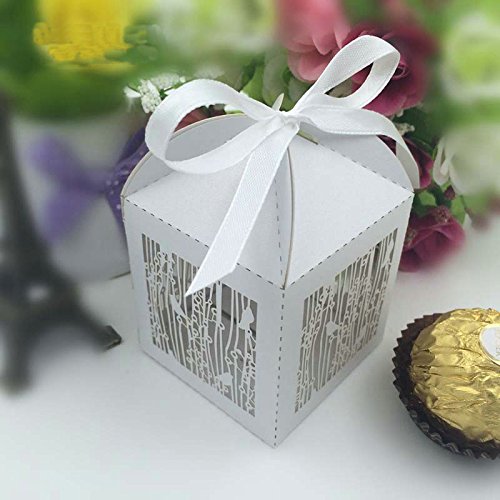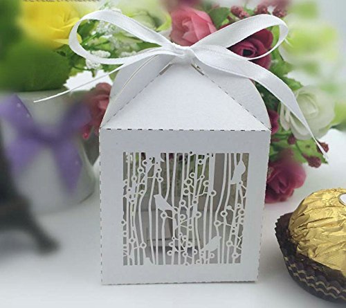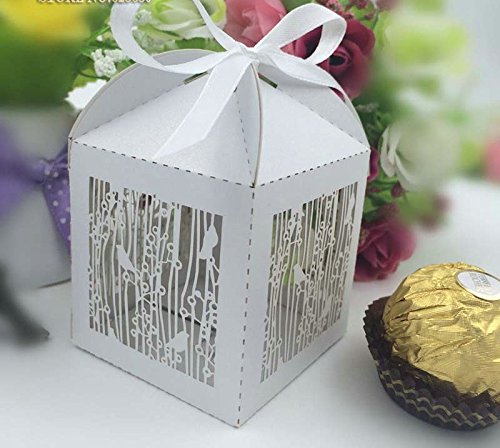 Joinwin 50PCS Laser Cut White Birdcage Wedding Favor Box in Pearlescent Paper box,party show baby shower candy favor box,chocolate box