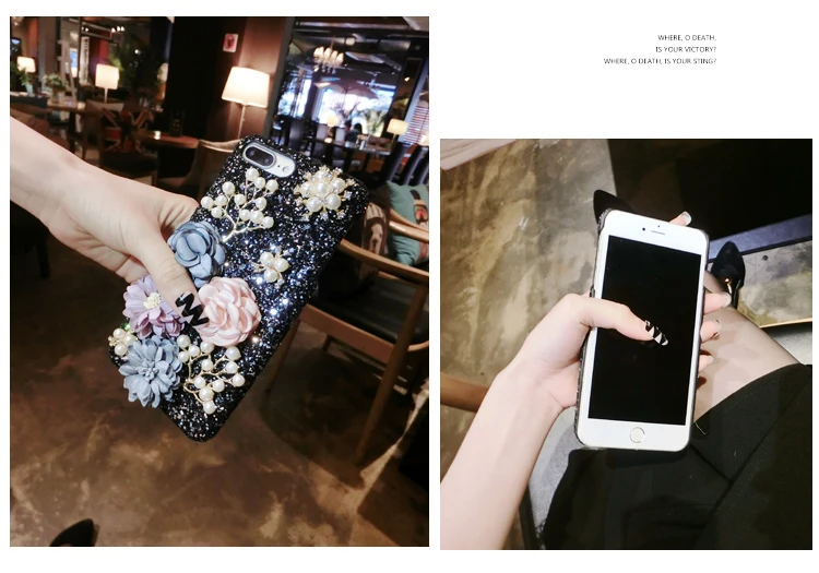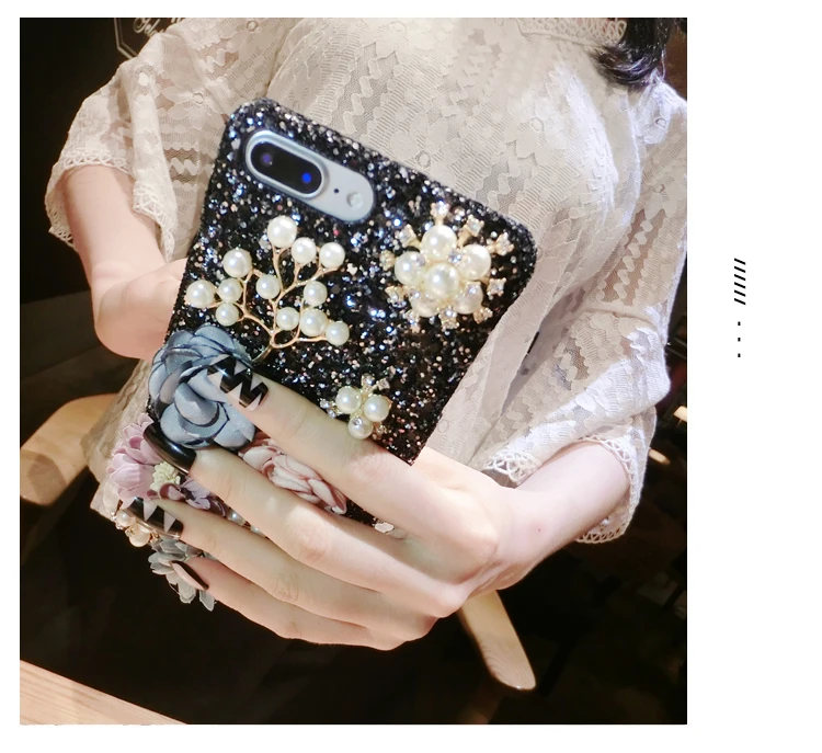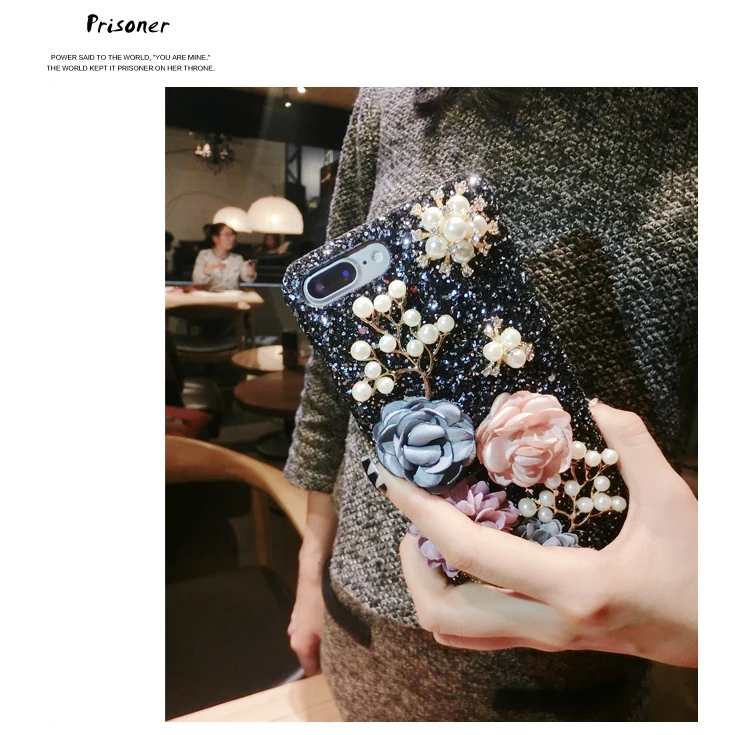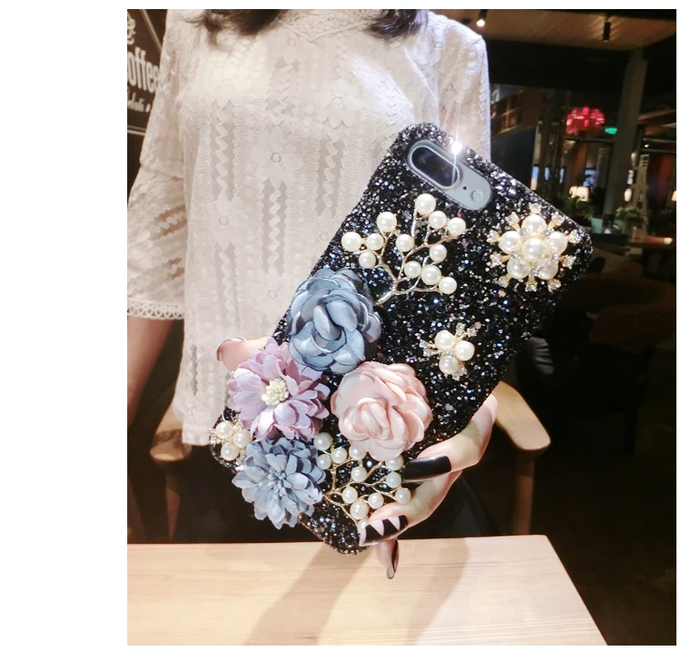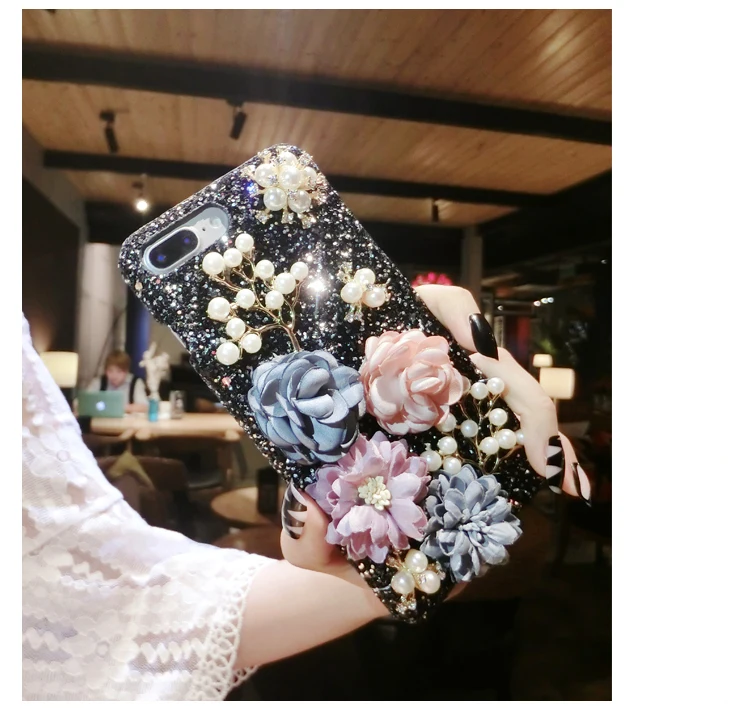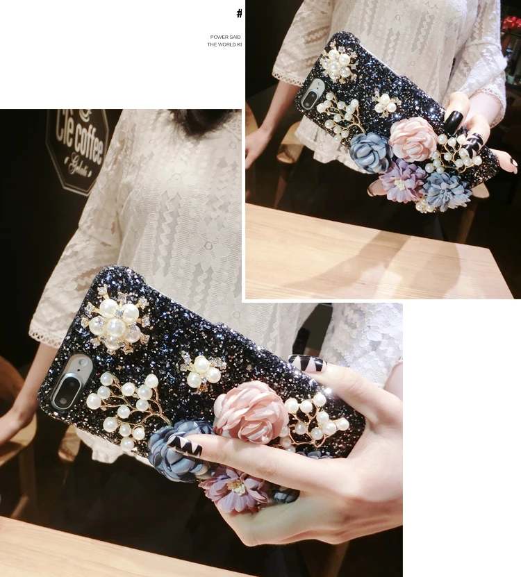 Features:Bling Diamond Pearl Cloth Flowers Glitter Hard Back Phone Case