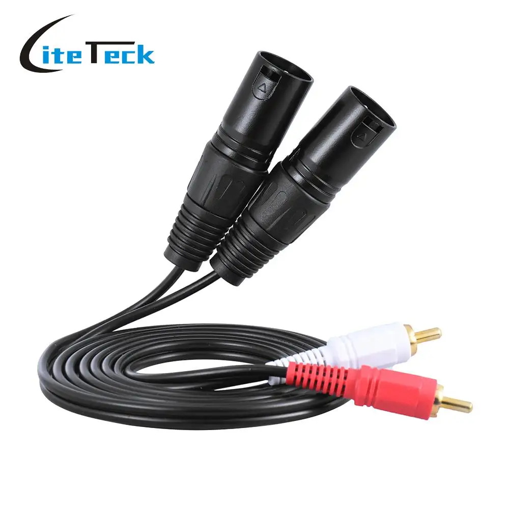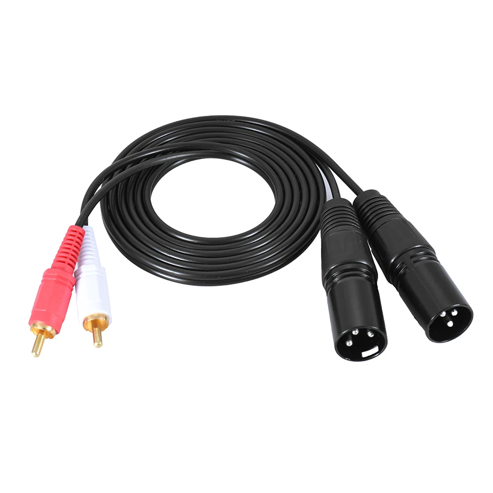 Two XLR male plugs to two RCA male plugs.