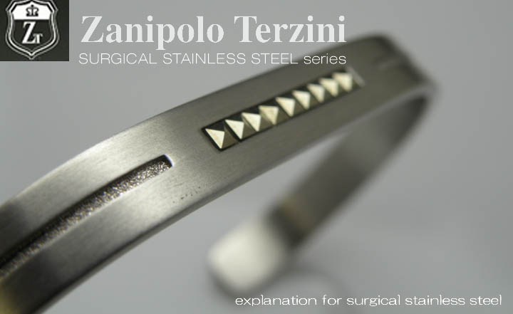 ステンレスには、細かく分類すると200種を超える種類がありますが、その中でもJIS規格で(316L)と呼ばれるサージカルステンレスは医療用工具のメスやハサミなどにも使用されており、 その事からもアレルギー性の極めて低い素材と言うことが分かります。