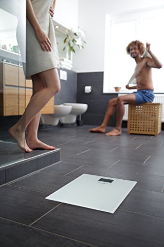 Bequeme "Step On" Einschaltung durch ein leichtes Drucken mit dem Fuss (barfuss) auf die Mitte der Waagenoberflache.