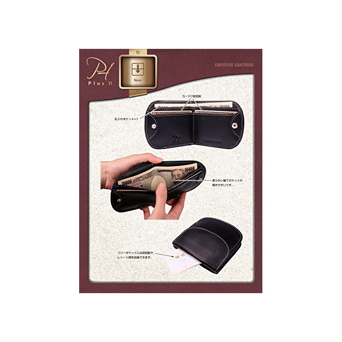 플러스 H(Plus H) 콤팩트 지갑 맨즈 레이디스 용돈 만들어 넣음(담는 그릇·상자 등) 부착 반 접기 가죽 지갑 카드 만들어 넣음(담는 그릇·상자 등) 레더 PH8061 (블랙