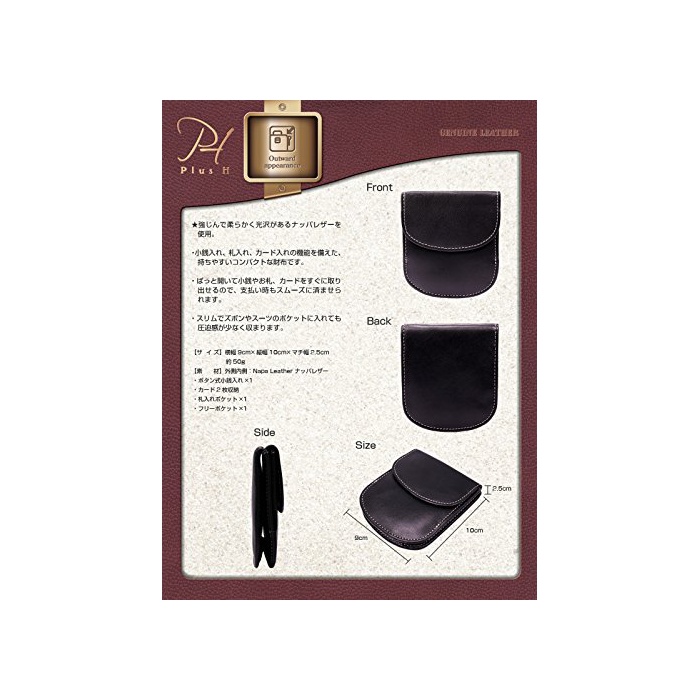 원본상품명: プラスエイチ(Plus H) コンパクト財布 小入れ付き 二つ折り 本革 札入れ カド入れ PH8061