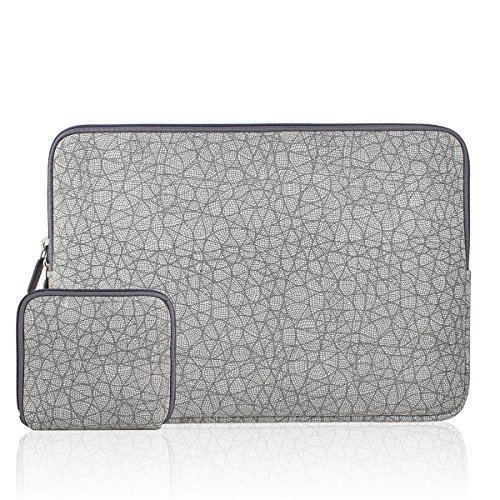 Kamor 13.3-Inch Canvas Fabric Leaf Vein Pattern Laptop Sleeve Apple MacBook Air / Apple Macbook Pro with Macbook Charger Case (Gray) ...
