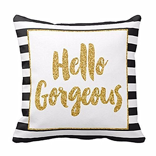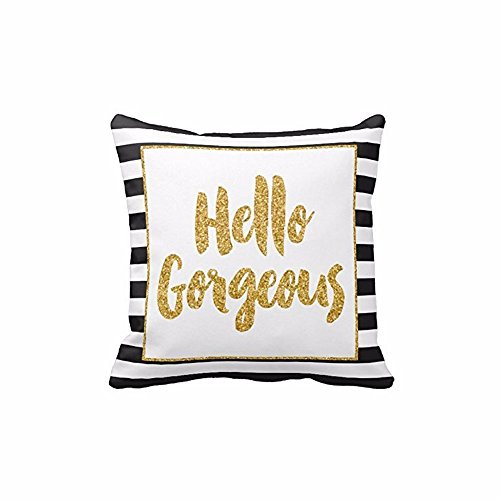 Dyg Smart New Hello Gorgeous letter printer pillow cover Gold Glitter Stripes Square
