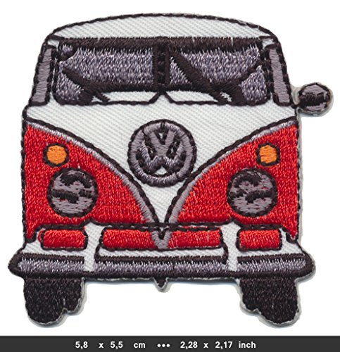 -. Title : VW Camper Van Bus Iron Sew On Patches Volkswagen Germany red front view by Patchmaniac
