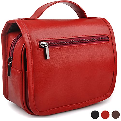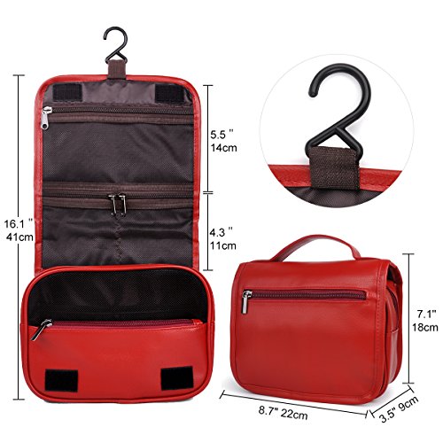 Product Description CONTAINS: 1 X Toiletry Bag Specifications: Material: Water-resistance PU Leather Toiletry bag dimensions:8.7"(22cm)L x 3.5"(9cm)W x7.1"(18cm)H KEY APPLICATION: Large and Organized Capacity: Keep your items neatly organized and easily accessible with this hanging toiletry bag.It is very convenience looking for what you need, the cosmetic bag provides multiple storage compartments and mesh interlayer, so you can find what you want easy and fast. The cosmetic bag made of water-resistance PU leather: Durable and Minimal weight with this hanging toiletry bag, water resistant and washable of PU leather material can perfect protect your presonal stuffs and toiletry bag. Elegant and classic design: Top handle and hanging hook of the tavel toiletry bag convenient for carry to anywhere,beauty and classical shape perfect for travel, business trip and other occassions.Large capacity and smart design can hold lots of your everyday toiletries and accessories items. Multifunction and practical: Best choice of the hanging toiletry kit for you to hold lots of your daily items for vocation,business trip,travel and any outdoor activity. 0