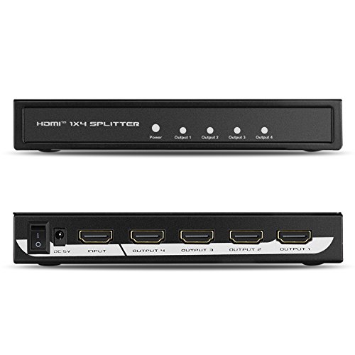 HDMI splitter box distributes identical video and audio signals from a single HDMI source to up to 4 remote HDMI displays simultaneously