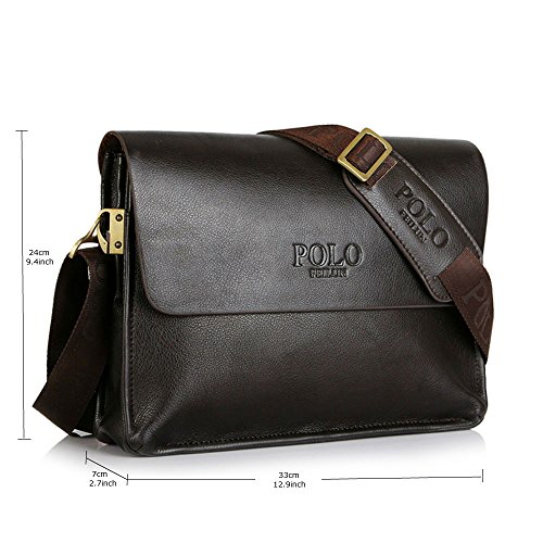 -. Title : POLO FEILUN Men's Genuine Leather Briefcase Business Composite Leather Classic Casual Bag Shoulder Messenger Satchel Bags for everday use 12.9"(L)x9.4"(H) x 2.7"(W)(Brown)