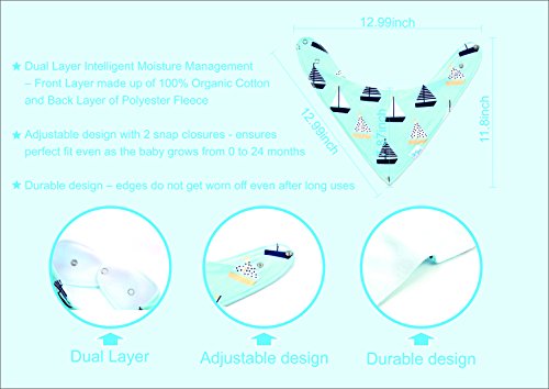 -. Feature : ABSORBENT COTTON DROOL BIB - These stylish drool bibs are made of 100% absorbent cotton on the front and 100% polyester fleece on the back. The front of the baby bib is a stylish knit fabric and the back is a super soft fleece that keeps your baby completely dry even with the drooliest of babies. Great for teething babies! / ADJUSTABLE NICKEL-FREE SNAPS - Each baby bandana bib comes with 2 nickel-free snaps that allow each bib to be adjustable in size to fit newborns and toddlers, with ages ranging from 3-24 months. . The snaps are secure, making it difficult for infants and toddlers to unfasten but are easy for parents to snap on and off. / TRENDY AND STYLISH BABY FASHION ACCESSORY - Our bandana bibs feature our own custom and unique designs that are trendy and fashion-forward. They're versatile and are the perfect finishing touch for any outfit. / UNIQUE BABY GIFT SET - Our 4-pack of girl baby bibs makes the best gift for new parents, new grandparents, baby showers, or for any excuse to make a baby look amazing.