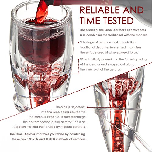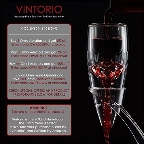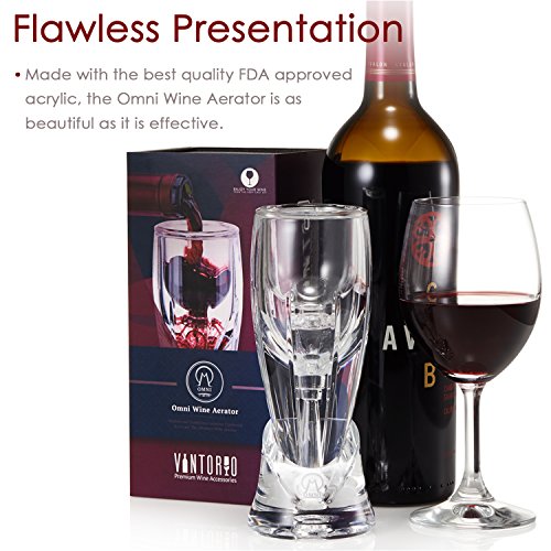 -. Feature : THE ULTIMATE WINE AERATOR - The Omni Wine Aerator opens up wine bouquet, softens tannins, and creates a smoother mouthfeel to enhance your overall wine drinking experience, all in the short time it takes to pour a glass. The Omni is the best and last wine aerator you will ever own. Treat yourself and your wine right with the Omni Wine Aerator. / RELIABLE AND TIME TESTED AERATION - The Omni Wine Aerator is the only aerator to use two PROVEN and time tested methods of aeration. The Omni combines aeration mechanisms of traditional decanter funnels and modern aerators to bring together the best of both worlds. No tricks, no gimmicks, just fine wine. / INSPIRED HASSLE FREE DESIGN - Unlike other wine aerators, the Omni has no side holes or small pieces that can easily leak, break, or get lost. This means that the Omni is not only the most beautiful and effective wine aerator in existence, but also is one of the easiest to use, maintain, and clean. / THE CENTERPIECE OF YOUR WINE COLLECTION - The Omni Wine Aerator is manufactured with 100% high quality FDA approved acrylic for durability and is presented in an impressive premium gift box packaging. Don't be surprised when your crystal clear Omni Aerator is mistaken for a trophy or an elegant dining table centerpiece. / LIFETIME MANUFACTURER'S GUARANTEE - To prove how confident we are in the Omni Aerator, we offer a lifetime money back guarantee with every purchase! If you are not completely satisfied with your aerator, we will refund your purchase with no exception! The Omni Aerator is On Sale for a Limited Time Only! Click the Add to Cart Button Now! (*Beware of counterfeit products, Vintorio is the SOLE distributor of the Omni Wine Aerator)