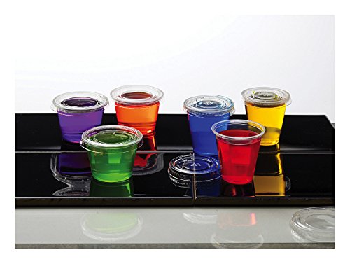 - Each package contains 25 crystal clear plastic shot cups and 50 lids; great for jello shots