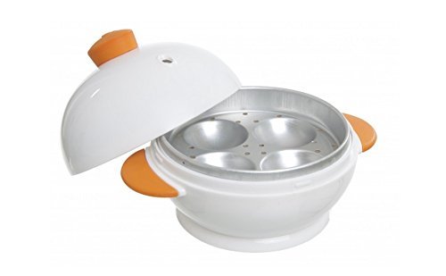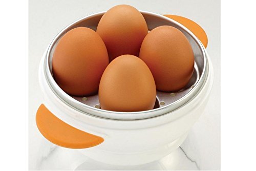- Microwave 1 to 4 soft-, medium-, or hard-boiled eggs in minutes in this microwave egg boiler. The boiler features an egg-shaped cover handle and includes a piercing pinand instructions.Colour: White boiler with orange handles.