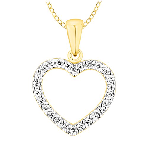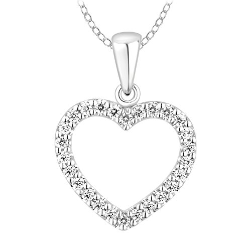This diamond studded heart pendant is a classic symbol of love. The open heart is crafted in 10k white gold, with Prong-set diamonds, and stationed on a classic 18" cable chain wih IJ Color and I2-I3 Clarity.