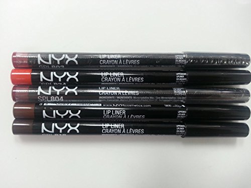 -. Feature : NYX Cosmetics Long Lasting Lip Liner set of 5 - CABARET, BURGUNDY, DARK BROWN, ORANGE, BROWN / 804,824,803,802,818