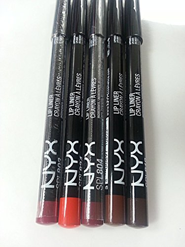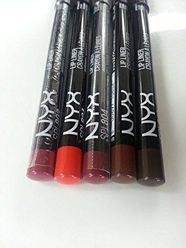 -. Title : NYX Cosmetics Long Lasting Lip Liner set of 5 - CABARET, BURGUNDY, DARK BROWN, ORANGE, BROWN