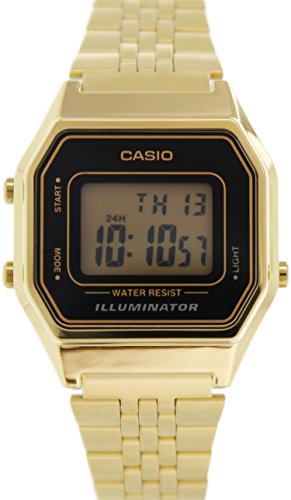 This amazing Illuminator watch by Casio has a unique style that is sure to catch your eye This timepiece features a gold metal band that is sure to catch anyones attention and a 29MM metal case that brings it together The digital dial helps complete the overall look of the watch This watch is also water resistant up to 30 meters 100 feet 3 atm and has a strong mineral crystal which makes this watch something that will last for a very long timeFeature