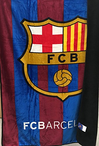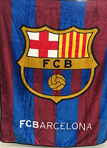 Fc Barcelona Plush Raschel Throw Blanket with Sherpa Lining 50x60" (FCB-1)