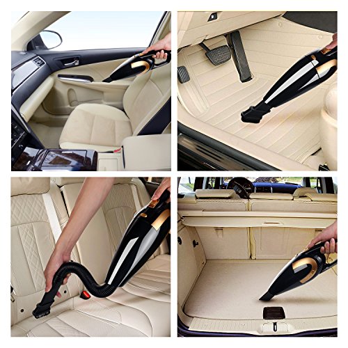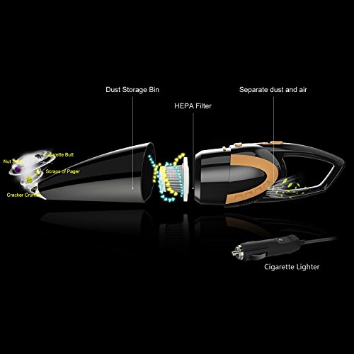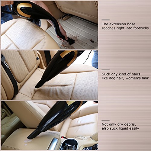 【High Power Suction】This 12V 80W Car Vac features powerful suction to get the cracker crumbs, sand, pet hair, liquid between the seats and mess from the floor without falling back out. Please insert Crevice Attachment when cleaning tiny dirt.