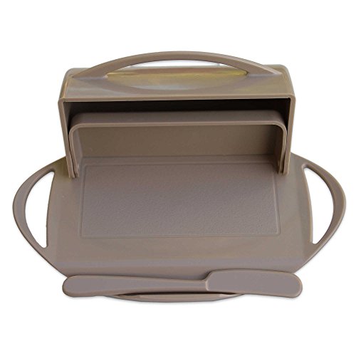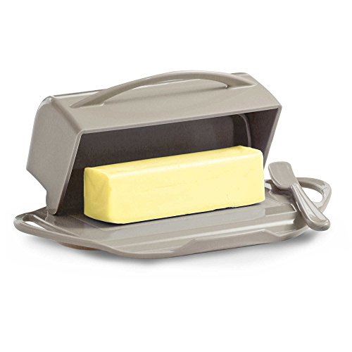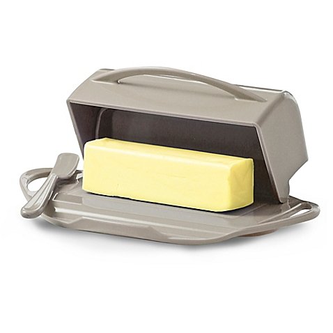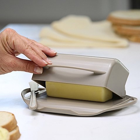Studio : All4You Publisher : All4You Product Description BPA-free. Not only is the Heritage Butter Dish a decorative piece for the table during mealtime, but it's also a functional tool in the kitchen. Great for cream cheese, too. Able to go from the refrigerator to the microwave to soften butter for easy spreading during meals. Shatterproof. Use the Butterie Flip-Top Butter Dish for an easy way to store butter. Non-slip base, the butter dish's construction also means it retains cooler temperatures longer, helping sticks of butter stay together on a warm outdoor table. Protects butter while keeping your countertops and tables clean. Easy-grip handles. Features a hidden back wall for keeping the butter knife clean. Includes a spreader with a specially designed cradle. 0
