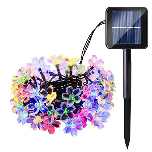 Qedertek Christmas Solar String Lights Flower, 22ft 50 LED Waterproof Outdoor Decoration Lighting for Indoor/Outdoor, Patio, Lawn, Garden, Xmas, and Holiday Festivals (Multi-color)