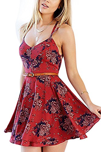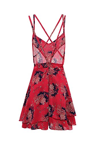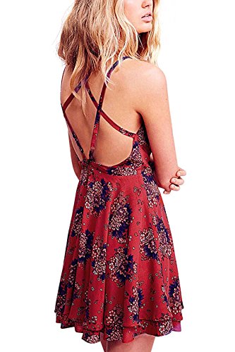 Title : YOINS Women's Sexy Floral Print Mini Dress Adjustable Straps Cami Skater Dress Red US 2