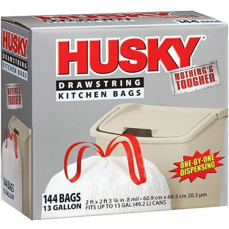 -. Title : Husky Drawstring Kitchen Bags, 13 gal, 144 count Model# HK13DS144W