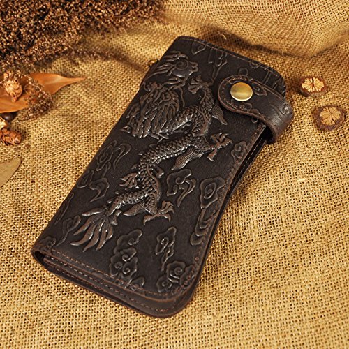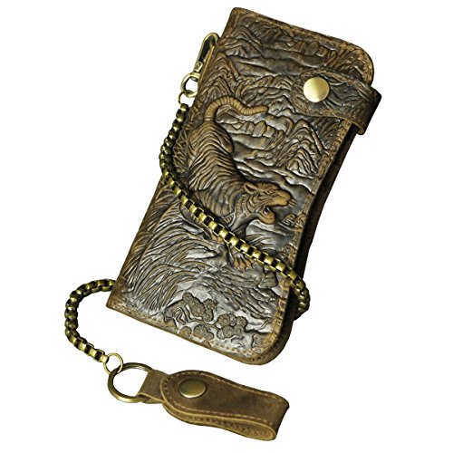 -. Title : Le'aokuu Mens Genuine Leather Bifold Wallet Organizer Checkbook Iron Chain
