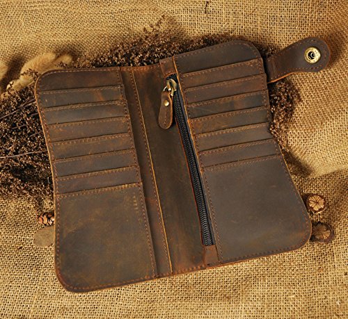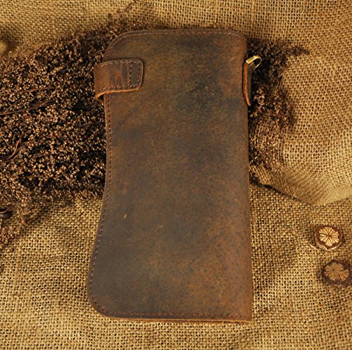 -. Feature : Product NO: W1088 / Material: Genuine Leather / Outside Size: 19cm(7.48") x 10cm(3.93") x 2.6cm(1") (Measured in wider position) / Structure: This is real leather organizer checkbook wallet has a few card slots, cash holder as well as a zipper holder. It come with a detachable iron chain, which can be snap attached to your pants when you put the wallet in pocket, thus avoid thieft. It has the perfect size for iPhone 6 plus. / Please be noted: This is genuine leather products, it usually come with the leather smell and it'll fade out as time going. It's also easy to get scratches on the surface, please understand, thanks.