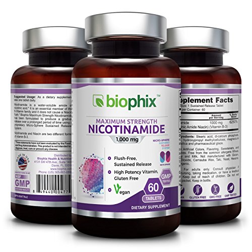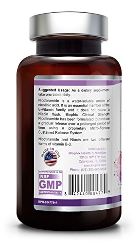 Nicotinamide is a water-soluble amide of nicotinic acid. It is an essential member of the B-Vitamin family and it does not cause a Niacin flush. Biophix Nicotinamide Sustained Release Extra Strength has been formulated to produce a gradual release over a prolonged period of time using a proprietary Micro-Sphere Sustained Release System.Feature
