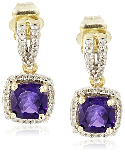 -. Title : 10k Yellow Gold Cushion Amethyst and White Diamond February Birthstone Earrings (1/10cttw, I-J Color, I2-I3 Clarity)