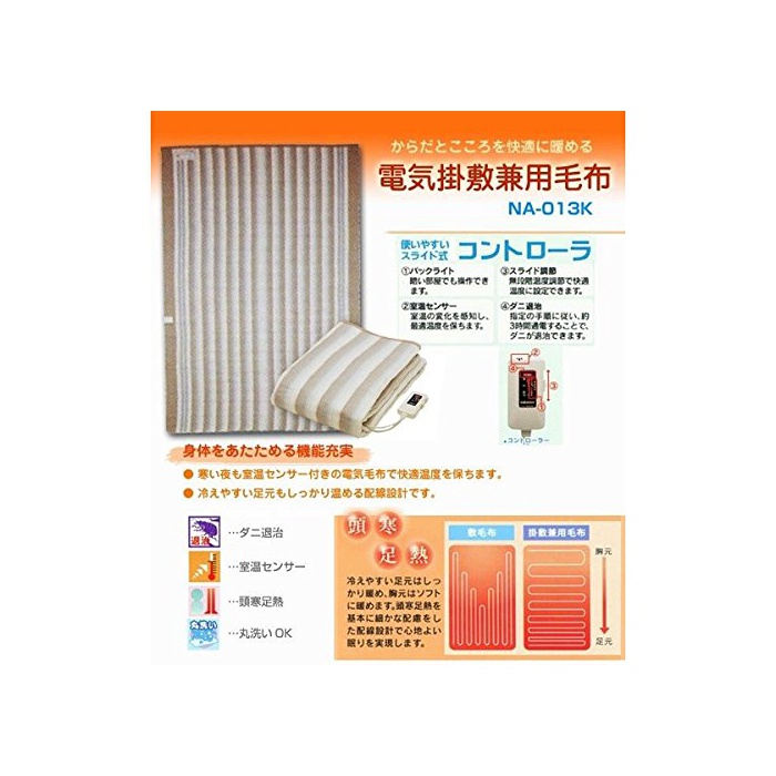 원본상품명: ナカギシ 掛け敷き 兼用 電毛布 188×130cm 丸洗い可能 / 安心の 日本製 室センサ ダニ退治 機能付き 掛け毛布 敷き毛布 冬用具