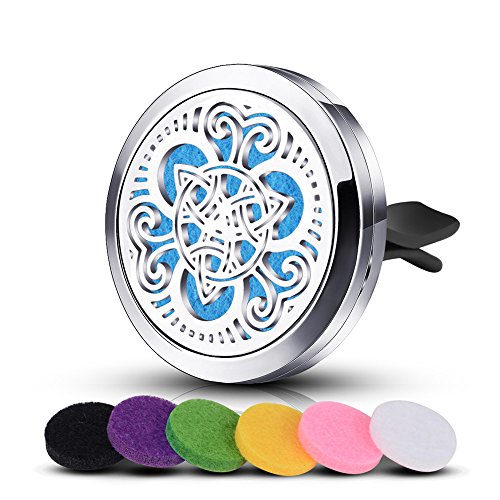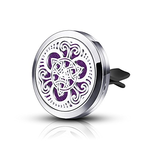 INFUSEU Celtic Knot Aromatherapy Car Diffuser for Essential Oils Stainless Steel Fragrance Locket Mini Protable Air Freshener with Vent Clip and 6PCS Refill Pads Meaningful Novelty Gift