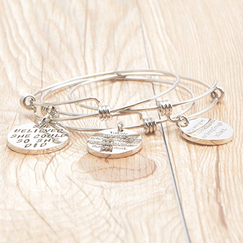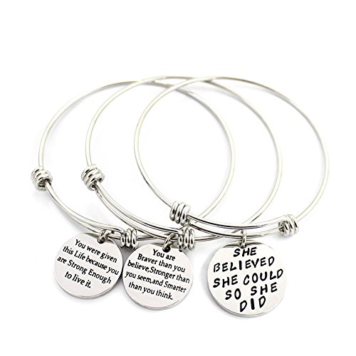 - 3pcs Unisex Womens Girls Motivational Silver Plated Metal STAINLESS STEEL Bracelets were Included: You were given this Life brcause you are Strong Enough to live it bracelet, She believed she could so she did bracelet for girls, womens,You are Braver than you believe, Stronger than you seem, and Smarter than you think Bracelet.