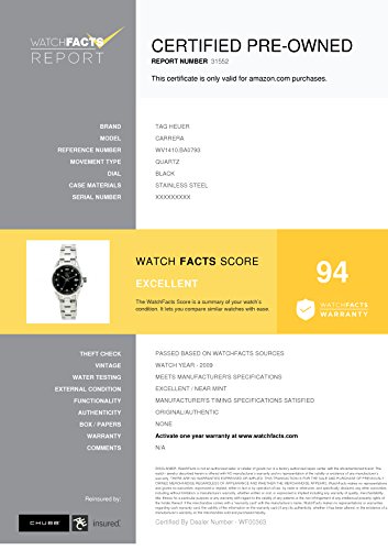 -. Feature : Tag Heuer Carrera WV1410.BA0793 with 7 millimeters band, stainless-steel bezel and black dial / Authenticated by WatchFacts. Grade Rating: 94 / Condition: Excellent / No papers offered with this watch / Quartz movement / Watch year: 2009
