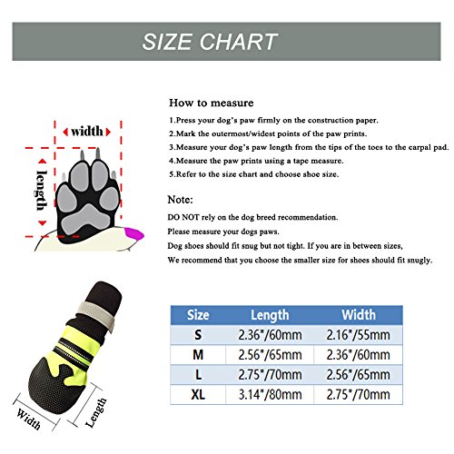 -. Feature : Paw Protector Soft & Breathable:Boot upper is made of double-layer breathable mesh fabric, firmly hemmed by soft durable cloth around, healthy and comfortable. / Anti-slip rubber soles, fit most roads like rugged and slippery surface without falling off. / Unique velcro design, you can adjust the tightness freely for comfortable and great fit, easy to wear and put off. / Lightweight and convenient, practical for dogs in daily basic wear, works well for walks, strolls, running, hikes, travels etc, also good for hardwood floors. / Please measure you dog size before purchase.Size S: Length 2.36"/60mm,width 2.16"/55mm.