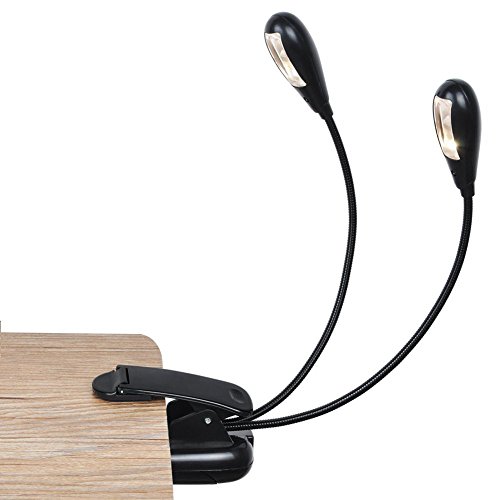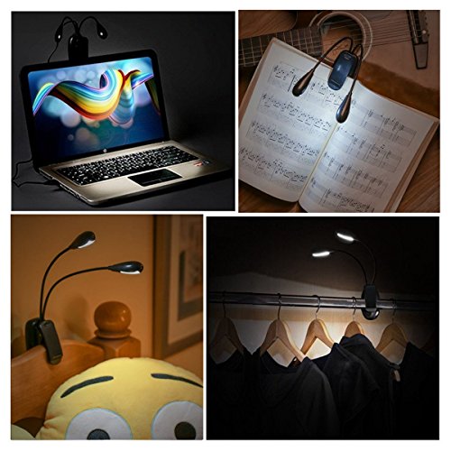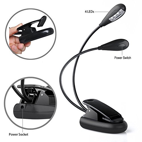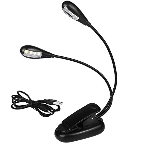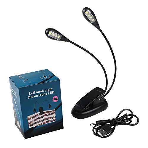 Dual Head Book Light, CAROLE 8 LED Clip Reading Lamp 2 Brightness Levels USB Charge Flexible Arms for Bed/Keyboard/Music/Camping