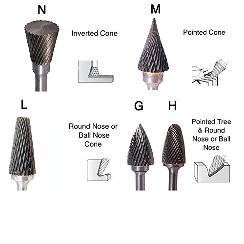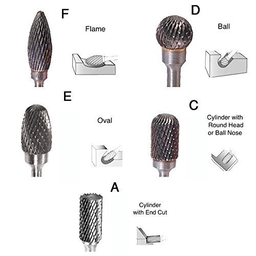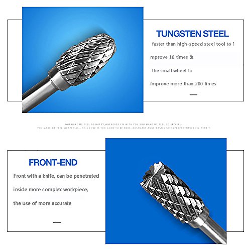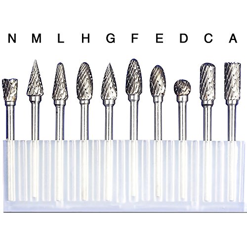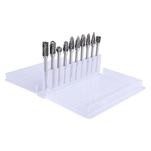 DRILLPRO Double Cut Carbide Rotary Burr Set--10 Pieces 1/8"(3mm) Shank and 1/4"(6 mm ) Head SizeTungsten Steel -- for Grinder Drill , DIY Wood-working Carving, metal polishing ,Engraving,Drilling