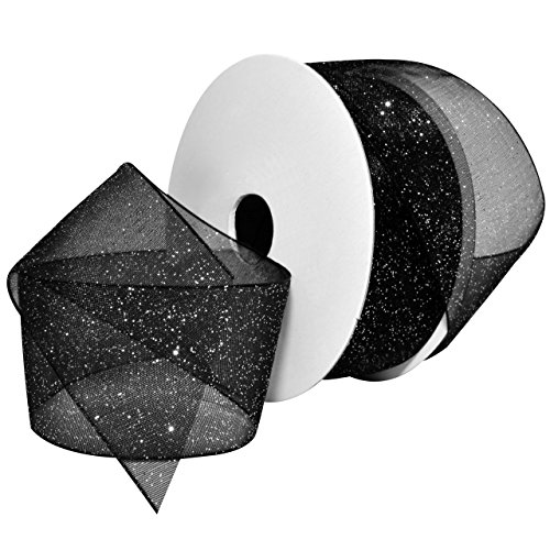 [Product Information]- Delightful sheer black organdy ribbon covered with sparkling glitter