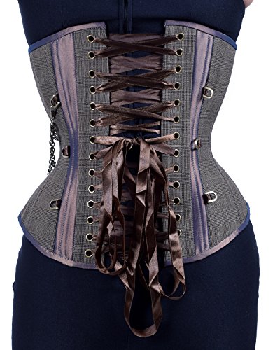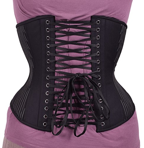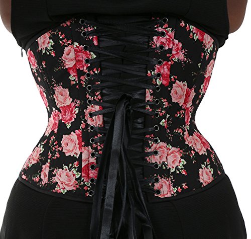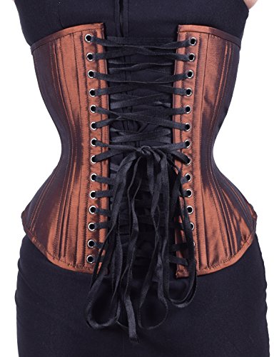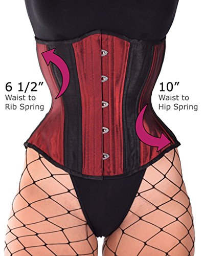 Binding : Apparel Product Description Comes with a no-hassle LIFETIME GUARANTEE. Our Hourglass Silhouette offers a beautiful shape and is surprisingly comfortable. Made with all steel boning that is ideal for waist training. Constructed with 20 flexible spiral steel stays (double boned) for added comfort and better form, 6 spring steel stays to support the grommets and busk, a 1/2" wide steel busk, a matching front modesty placket, and waist tape for added support at the waist line. Made with three layers of fabric for extra durability and a smooth look: two layers of premium cotton twill that are laminated to the outer fashion fabric. Six garter loops are sewn in to the bottom trim (garter straps sold separately). Corset Springs: Rib Spring: 6.5" (measured 5" up from the bottom edge of waist tape) Hip Spring: 10" (measured 4" down from the bottom edge of waist tape) Corset Measurements: Center front: 11.75" with a 10" busk Side length: 9.5" - 9.75" Center back: 12.75" Underbust to lap: 10.25" - 10.5" 0