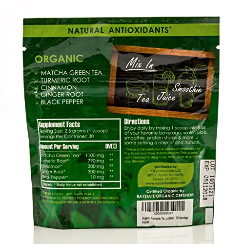 Organic Turmeric Tea Powder - Natural Joint Support Supplement With Matcha Green Tea, Turmeric, Cinnamon, Ginger & Black Pepper To Mix In Juice,...