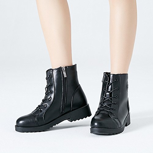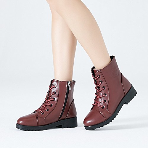 Studio : YLSZ-Shoes Publisher : YLSZ-Shoes Product Description Applicable gender: female style: casual toe shape: round heel height: in with (3-5CM) heel shape: thick with popular boots section: Martin boots popular elements: car suture function : Increased, warm, waterproof, non-slip Bobbin height: Low tube Thickness: Thicken Wearing style: Front tie Pattern: Solid color Suitable season: winter Boots inside Material: Material: artificial plush boots section Name: Martin boots Color: red, black Size: 35,36,37,38,39,40 0