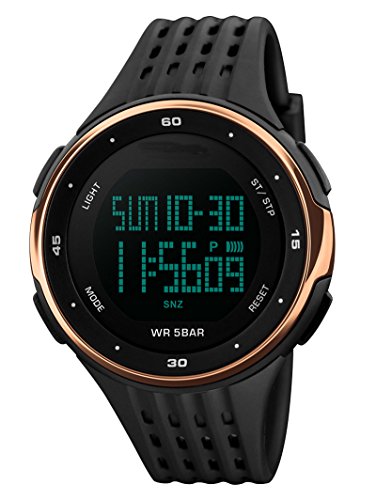 -. Title : Men's Sports Watch Military 50M Digital LED Large Face with Black Silicone Strap Simple Army Watch