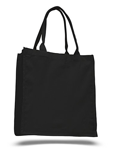 1 Dozen) Set of 12- Reusable Cotton Fancy Shopper Tote Bags (Black)