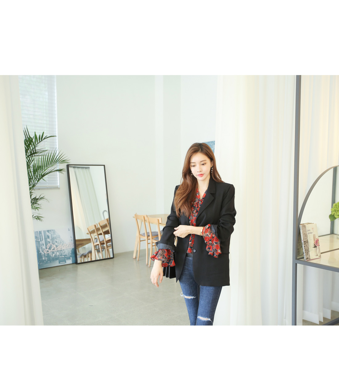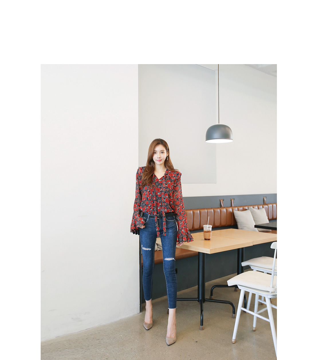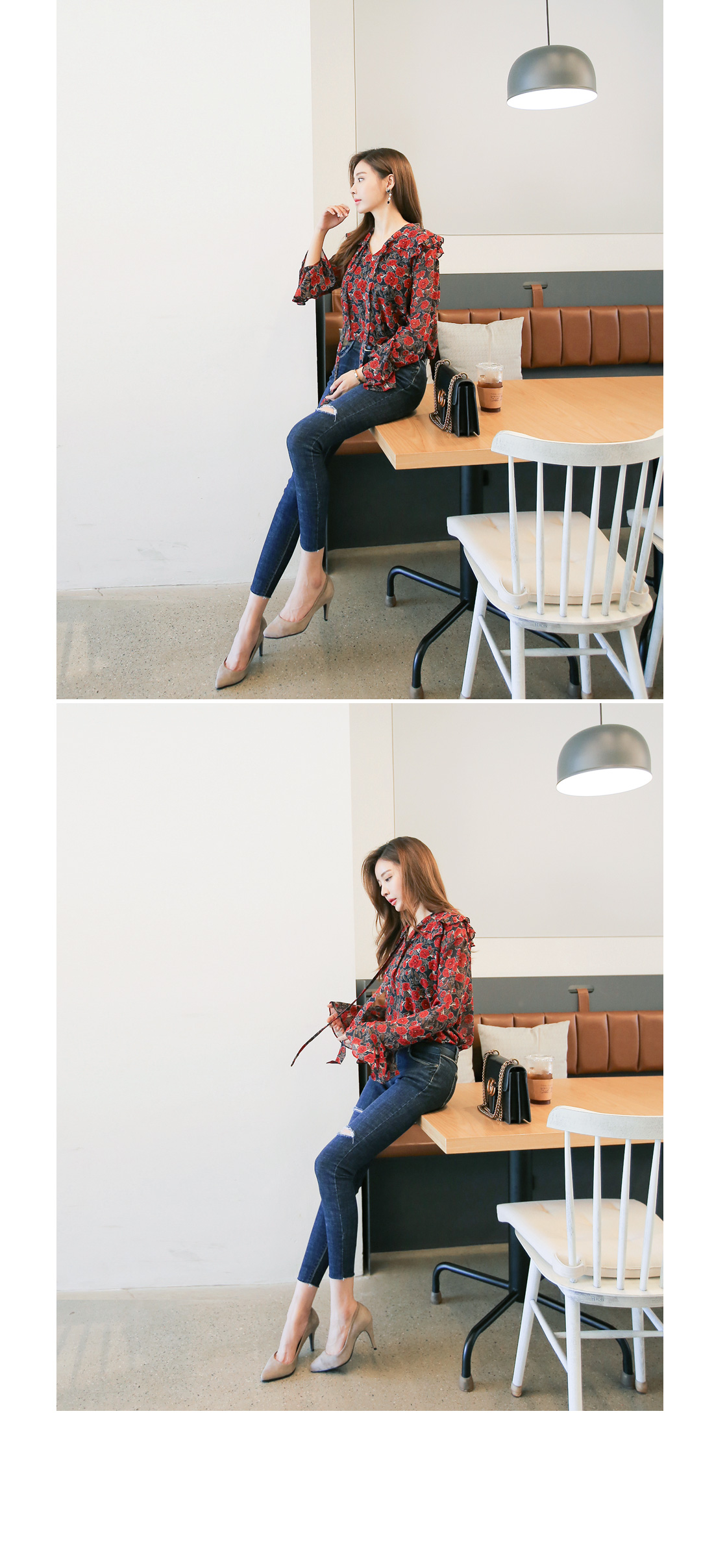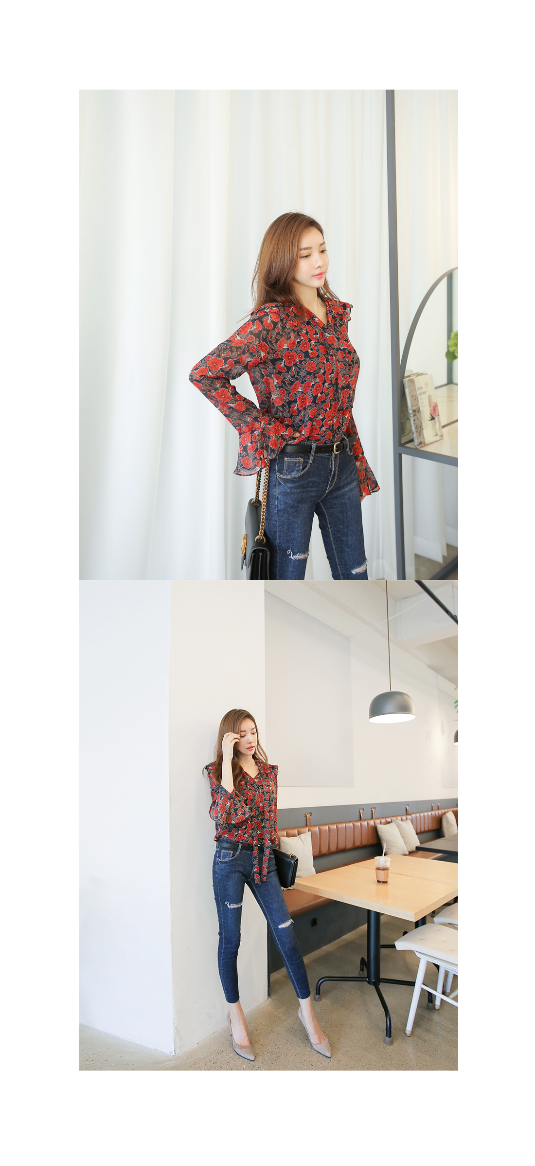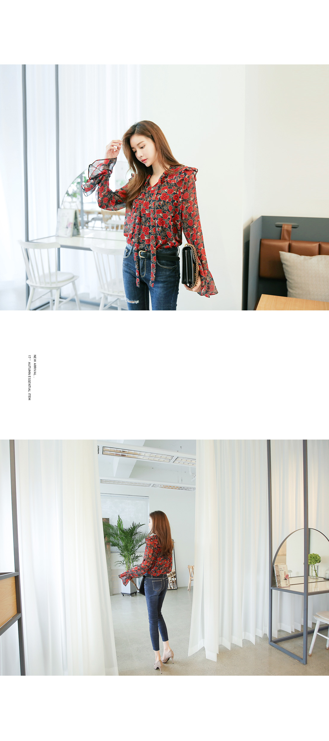 페미닌한 무드를 더한 블라우스 아이템이랍니다.